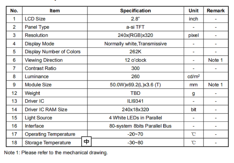 品名: 2.8寸電阻觸摸顯示屏