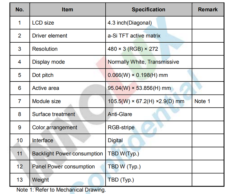 品名: 4.3寸群創(chuàng)原裝屏