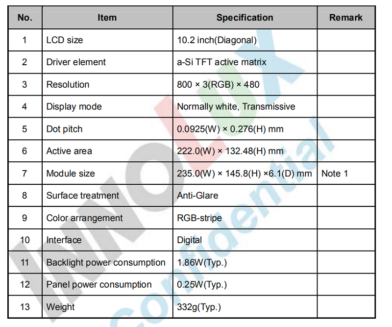 品名: 10.2寸群創(chuàng)普清液晶屏