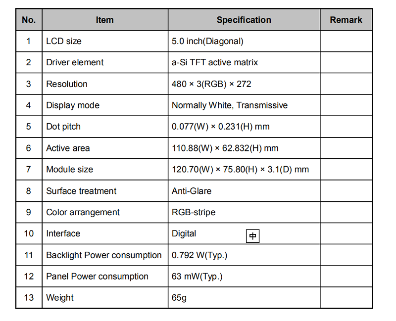 > 產(chǎn)品中心 > 宇華液晶屏 > 5寸普清液晶屏(480*272)