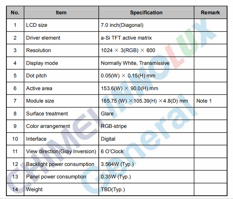 品名: 7寸群創(chuàng)1024*600準(zhǔn)工業(yè)液晶屏
