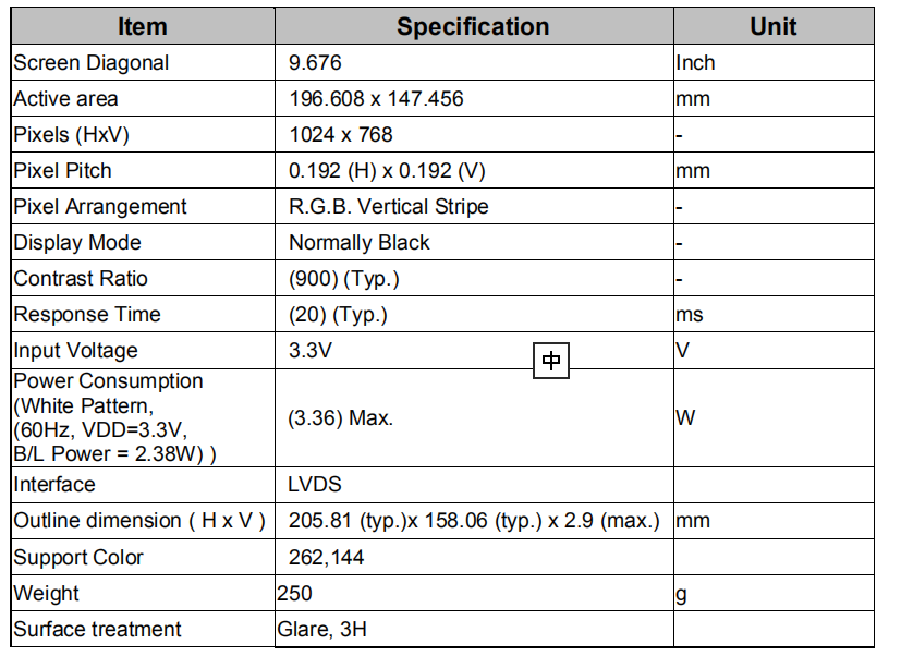> 產(chǎn)品中心 > 宇華液晶屏 > 9.7寸高清液晶屏(1024*768)